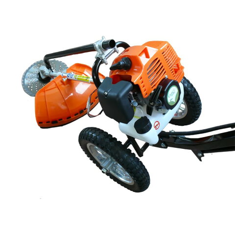 ・燃料タンク 1,2リットル ・点火方式 トランジスタ式マグネト点火方式 ・始動方法 リコイルスターター(らくらくスターターへバージョンアップ!) ・タイヤ ノーパンクタイヤ仕様 〇全体サイズ ・全長 ※ハンドル後端より本体最先端まで 1220mm± ・高さ ※地上よりハンドル先端までの高さ 980mm± ハンドル角度は使用する方へ合わせててご使用いただけます。